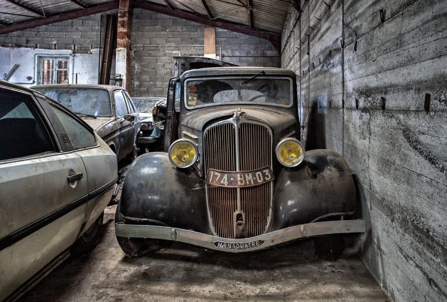 In a small village in France we visited an abandoned repair / car trade shop. It was built next to the home of it’s owner Mr. Gilbert. He collected about 250 vintage cars for restoration, mainly French cars like Citroën, Peugeot and Renault. His business was about to expand, but 35 years ago he suddenly died and nobody cared for his collection anymore.