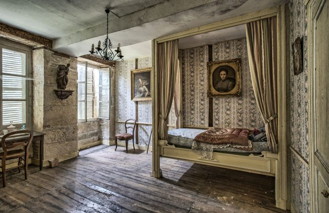 Château d’Alchimiste is an impressive abandoned castle situated in a small village in France, where the population is decreasing day by day. The castle was once inhabited by a professor, it was shocking to discover that all his test tubes, antique chemistry equipment and even his butterfly collection were left behind. We felt like wandering through a museum! In his spare time the professor created many paintings which were spread across the castle. In the children’s room we unexpectedly bumped against a hidden door in a wall. We entered a small space and suddenly we found ourselves in his secret rest room surrounded by his paintings, a marvelous place! The bedrooms were breathtaking like in a fairytale, there we found a newspaper dated 1992. On the attic we found even a larger collection of paintings. We left via the spooky garden, the castle and trees are getting overgrown. Suddenly dogs from the neighbourhood started barking loudly, the strange thing is that we saw no inhabitants, half of the village looked abandoned.