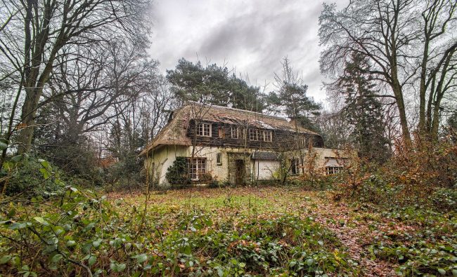 This creepy abandoned house has fantastic natural decay. The big livingroom with fireplace must have been cosy back in the days. The stairs are rotten and half of them are gone, when you are unlucky you can fall in the deep dark basement filled with water. So you definitely need to be with 2 persons…