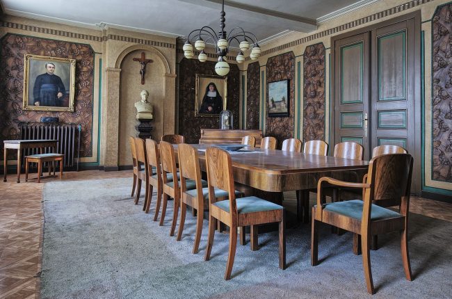 This abandoned monastery and school was established in 1806. Over the years the site was expanded and remodeled. In 1839 the Golden Chapel was initiated, but later it was expanded and decorated and in 1846 re-initiated. The result was a large baroque chapel with rich ceiling- and wallcovering and a monumental baroque altar. Between 1843-1845 the Silver chapel was built. A private chapel for priest Joseph de Pélichy. The Golden chapel is protected heritage since 1981, a part of the buildings is also protected since 2012. The Sisters of Maria left in 2013, since 7 years this monastery is abandoned now. Highlights were the Golden and Silver chapel, the art deco livingroom, the corridors, dining and classrooms. On the attic we found two pictures of sisters. In the basement an old washing machine and a ironing board. A project developer has a plan to restore the historic and protected parts of the site. And they are studying how to re-use the Golden and Silver chapel and propositions are welcome. This hidden pearl will be restored in it’s honour again. We took pictures for 1 1/2 hrs and it was nice to meetup with old photographer friends which we don’t see so often anymore.