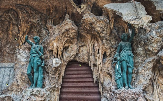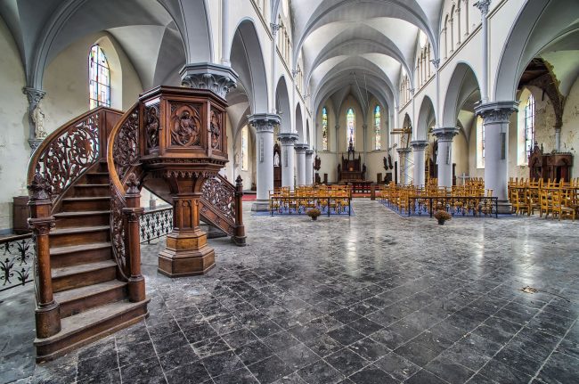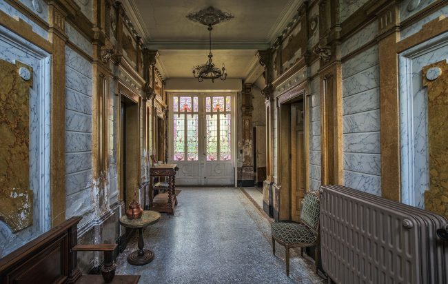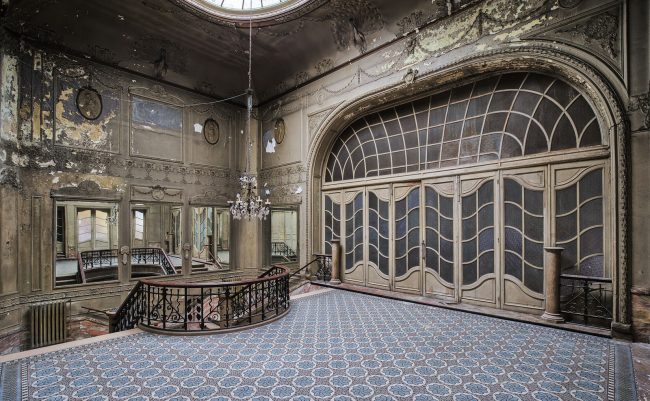 The abandoned Aegidium Theatre has been on my to do list since many years. It’s an architectural pearl and flashback in time. The theatre is situated in the most vivid district of Brussels “Saint Gillis”. It was constructed in 1905 by Guillaume Segers and bought by Léon Bejay-Dejonghe. Actually he bought a complete city block and found space in the middle to build the complex. The theatre was first known as ‘Ægidium’, named after the patron saint of Saint-Gillis, this name would give protection to the municipality according to the priests (Ægidius) It was first a ‘Salle de Spectacle’, the auditorium was located at first floor level. The foyer and stairs have the feel of entering a grand house, with marble, mirrors and chandeliers. Seating in the auditorium was provided in stalls and balcony levels. It was a palistered and mirrored auditorium, flanked by Moorish style arches along the walls. In 1913 it was decorated as a cinema and the name was changed to “The Diamond Palace’. After the death of the owner Bejay-Dejonghe, Mr. Fernand Dierckx bought the building in 1924 and turned it into a dance venue under the name ‘Panthéon Palace’. This was the hotspot of Brussels nightlife and got property of VZW “Parochiale Werken” that had put the building available for social life. It was used for receptions and parties for everyone, from scouts up till the third age, from 7 till 77 years, it got a meeting place for the population of Saint-Gillis. The building has various interior styles, Art Nouveau & Art Deco elements merge. The foyer downstairs has Art Nouveau panels with mirrors and figurative ceramic tiles from Helman. Next to the building the café is still active today, there’s also a smoking room and a winter garden. The monumental stairwell with oval skylight leads to the two large rooms located on the first floor. Firstly the spectacular Neo-Moorish style theater. Secondly, the smaller polygonal ballroom in the more common Louis XV style. Slowly the imposing building got aged and needed a thorough renovation and it was closed in 1985. The VZW Parochiale Werken and local government never had the courage to restore the building in it’s old glory. The first step was the classification of the building in 2006 to protect it, then the search of projects that could revive the building again started. There were many initiatives which appeared in the press, but they were withheld, as the renovation was needed first. The purpose now is to create a unique place for performing arts, music performances and many other activities in Brussels. In May 2013 Edificio (where the building was classified) gave instructions for the renovation and restoration to the architect studio Ma². The theatre is closed so you cannot simply visit it as a tourist. We booked an official photographers visit and paid €30 each for 1.5hrs shooting and support to maintain this architectural masterpiece. The theatre will be renovated very soon, luckily we were just on time before the renovation will start for a period of 5 years.